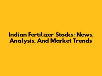 Indian Fertilizer Stocks: News, Analysis, And Market Trends