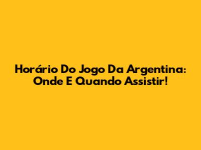 Horário Do Jogo Da Argentina: Onde E Quando Assistir!