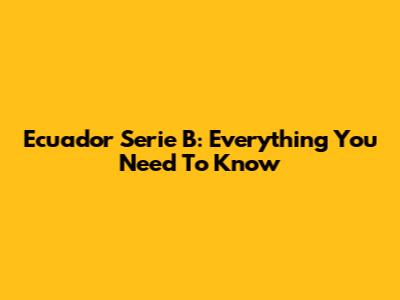 Ecuador Serie B: Everything You Need To Know