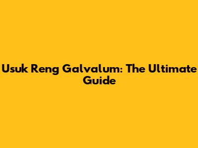 Usuk Reng Galvalum: The Ultimate Guide
