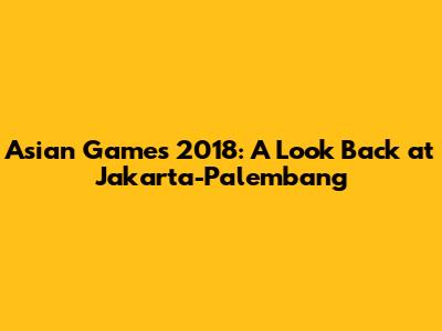 The Impact and Legacy of the Asian Games 2018