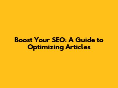 Boost Your SEO: A Guide To Optimizing Articles