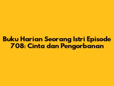 Guys, episode 708 dari Buku Harian Seorang Istri ini bener-bener bikin hati meleleh! Kita bakal diajak lagi nih buat ngikutin kisah cinta yang penuh lika-liku antara karakter-karakter favorit kita. Di episode kali ini, fokusnya bakal lebih ke gimana para tokoh menghadapi ujian cinta dan pengorbanan yang nggak main-main. Siap-siap tisu ya, karena banyak momen yang bikin terharu sekaligus gregetan.
