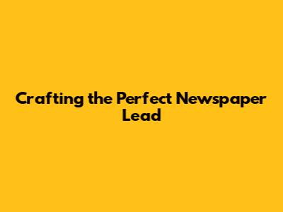 Crafting The Perfect Newspaper Lead