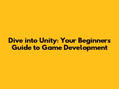 Dive Into Unity: Your Beginner's Guide To Game Development