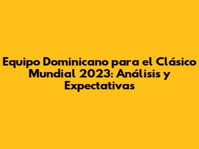 Las expectativas para el equipo dominicano en el Clásico Mundial de Béisbol 2023 son altas, y con justa razón. El equipo tiene el talento y la experiencia necesarios para llegar lejos en el torneo, e incluso ganar el campeonato.
