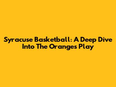 Syracuse Basketball: A Deep Dive Into The Orange's Play