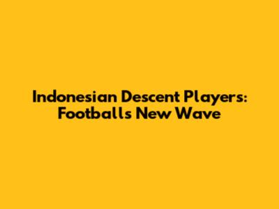 Indonesian Descent Players: Football's New Wave