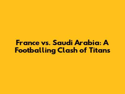 Hey sports fanatics! Ever wondered what happens when the finesse of France clashes with the rising prowess of Saudi Arabia on the football field? Well, buckle up, because we're about to dive deep into the fascinating world of France vs. Saudi Arabia football. This isn't just about a game; it's a meeting of footballing cultures, a test of tactical brilliance, and a showcase of individual talent. We'll explore their past encounters, dissect their playing styles, and look at potential outcomes. So, grab your jerseys, prepare your snacks, and get ready for an exciting journey through the beautiful game. This analysis is designed to give you a comprehensive understanding of the match-up, providing insights that will enhance your viewing experience and deepen your appreciation for the sport. This article will be your ultimate guide, covering everything from historical data to player comparisons and potential game strategies. We'll leave no stone unturned as we analyze every aspect of this captivating encounter. The anticipation builds – who will emerge victorious, and what narratives will unfold on the pitch? Let's begin!