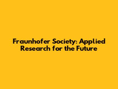 Fraunhofer Society: Applied Research For The Future