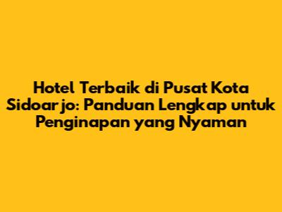 Menemukan hotel terbaik di pusat kota Sidoarjo tidaklah sulit jika kamu mengikuti panduan ini. Pertimbangkan lokasi, fasilitas, harga, dan ulasan dari tamu sebelumnya. Gunakan strategi pencarian yang efektif dan jangan ragu untuk menghubungi langsung pihak hotel. Dengan perencanaan yang matang, kamu akan menemukan penginapan yang sesuai dengan kebutuhan dan anggaranmu. Nikmati pengalaman menginap yang menyenangkan di Sidoarjo!