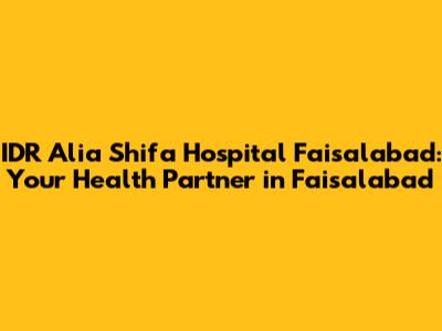 Hey guys! Are you looking for a reliable healthcare provider in Faisalabad? Look no further! IDR Alia Shifa Hospital is here to serve you with top-notch medical services and a compassionate touch. This hospital is committed to providing comprehensive healthcare solutions to the residents of Faisalabad and beyond. Let's dive in and explore what makes IDR Alia Shifa Hospital a trusted name in the community.