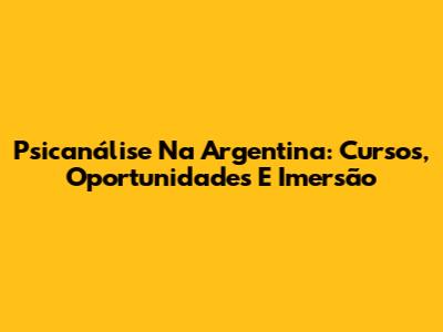 Psicanálise Na Argentina: Cursos, Oportunidades E Imersão