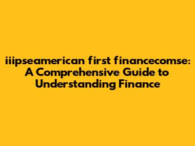Iiipseamerican First Financecomse: Guide To Finance