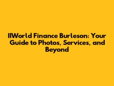 Unveiling IIWorld Finance Burleson's Services: What You Need to Know