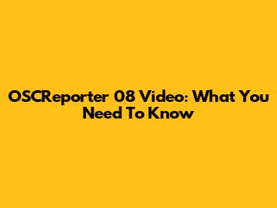 OSCReporter 08 Video: What You Need To Know