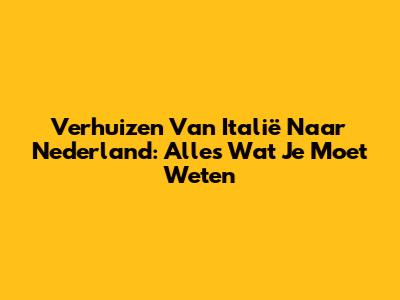 Verhuizen Van Italië Naar Nederland: Alles Wat Je Moet Weten
