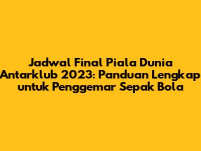 Hai, para penggemar sepak bola! Kalian semua pasti sudah tidak sabar menantikan Piala Dunia Antarklub 2023, kan? Turnamen bergengsi ini selalu menyajikan pertandingan seru yang mempertemukan klub-klub terbaik dari seluruh dunia. Nah, buat kalian yang ingin tahu lebih detail tentang jadwal final Piala Dunia Antarklub 2023, kalian datang ke tempat yang tepat! Artikel ini akan membahas secara lengkap informasi penting seputar jadwal, tim yang berpartisipasi, lokasi pertandingan, dan hal-hal menarik lainnya yang wajib kalian ketahui. Jadi, siapkan diri kalian untuk mendapatkan informasi terlengkap dan ter-update mengenai turnamen sepak bola kelas dunia ini.