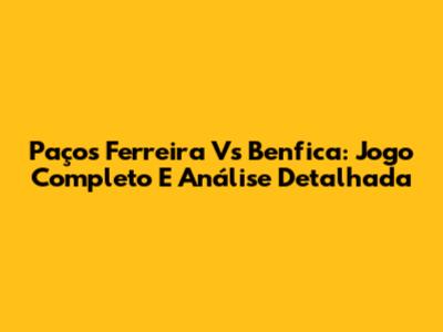 Paços Ferreira Vs Benfica: Jogo Completo E Análise Detalhada