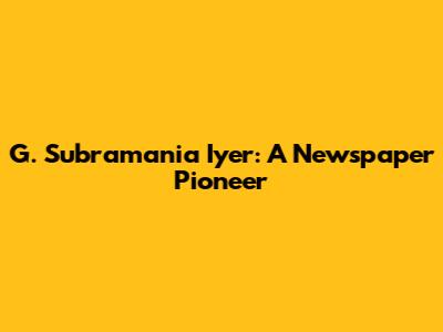 G. Subramania Iyer: A Newspaper Pioneer