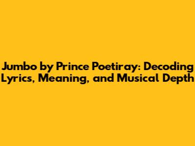 Hey music lovers! Ever found yourself completely hooked on a song? Feeling the need to dig deep into its meaning, the story it tells, and the emotions it stirs? Well, you're in the right place! Today, we're diving headfirst into "Jumbo" by the one and only Prince Poetiray. This song has been making waves, and for good reason! It's got that infectious beat, but more than that, it has a message that resonates with so many of us. So, grab your headphones, get comfy, and let's explore the lyrics, meaning, and overall vibe of this awesome track. We'll break down everything from the specific words to the underlying themes, giving you a fresh perspective on why "Jumbo" is such a hit. Let's get started, shall we?