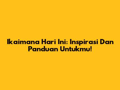 Ikaimana Hari Ini: Inspirasi Dan Panduan Untukmu!