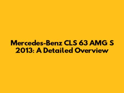 The Mercedes-Benz CLS 63 AMG S 2013 represents the pinnacle of luxury and performance in the four-door coupe segment. Guys, if you're looking for a car that seamlessly blends elegant design with breathtaking power, this is it. Let's dive into what makes this car so special.