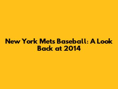New York Mets Baseball: A Look Back At 2014
