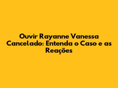 Ouvir Rayanne Vanessa Cancelado – essa frase tem gerado curiosidade e discussões nas redes sociais. Mas o que exatamente aconteceu com Rayanne Vanessa? E por que o termo "cancelado" está associado a ela? Neste artigo, vamos mergulhar fundo no assunto, explorando os detalhes do ocorrido, as reações do público e as possíveis consequências para a carreira da artista. Prepare-se para uma análise completa e informativa sobre esse tema que tem dominado as conversas online.