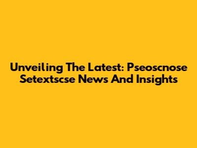 Unveiling The Latest: Pseoscnose Setextscse News And Insights