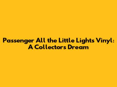 Hey vinyl enthusiasts and Passenger fans! Today, we're diving deep into something truly special: the Passenger "All the Little Lights" vinyl release. If you're like me, you appreciate the warm, analog crackle of a record player bringing your favorite music to life. And when it comes to a masterpiece like "All the Little Lights," experiencing it on vinyl is an absolute game-changer. This isn't just about listening; it's about owning a piece of musical history, a tangible representation of the heartfelt melodies and poignant lyrics that have resonated with so many of us. We're going to explore why this particular vinyl pressing is so sought after, what makes it a must-have for collectors, and where you might be able to snag one for your own collection. Get ready, because we're about to illuminate the magic of "All the Little Lights" on wax!