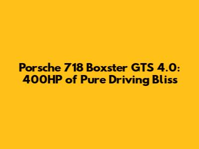 Hey gearheads and car lovers! Today, we're diving deep into a machine that's practically a love letter to the art of driving: the Porsche 718 Boxster GTS 4.0. If you're looking for a sports car that offers an intoxicating blend of performance, handling, and raw driving pleasure, you've stumbled upon the right place. This isn't just another car; it's an experience, a symphony of mechanical prowess designed to make your heart race and put a massive grin on your face. We're talking about a 400 horsepower beast that embodies everything great about the Boxster lineage, with a few extra sprinkles of awesome. So, buckle up, because we're about to explore why this particular 718 Boxster is a serious contender for the top spot in the mid-engine sports car segment. Get ready to feel the road like never before!