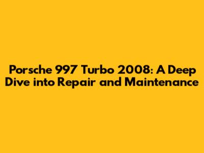Porsche 997 Turbo 2008: Ultimate Guide To Repair & Maintenance