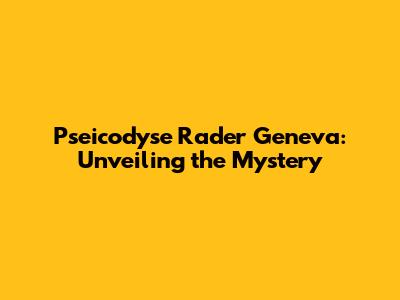 Pseicodyse Rader Geneva: Unveiling The Mystery