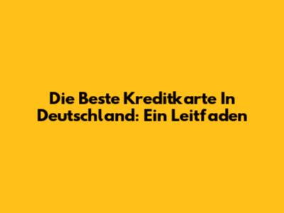 Die Beste Kreditkarte In Deutschland: Ein Leitfaden