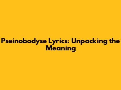 Pseinobodyse Lyrics: Unpacking The Meaning