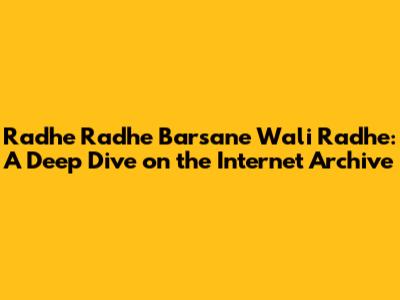 Hey guys! Ever wondered about the spiritual significance and historical context behind the chant "Radhe Radhe Barsane Wali Radhe"? Well, you've come to the right place! Today, we're going to explore this powerful mantra and how you can find a treasure trove of its related content on the Internet Archive. This isn't just any chant; it's a profound expression of devotion to Radha, the beloved of Lord Krishna, particularly in the region of Barsana, her birthplace. We'll be delving into the meaning, the devotional practices, and, of course, how the Internet Archive serves as an amazing resource for anyone looking to learn more, listen to chants, or even find historical recordings. So, buckle up, get ready to immerse yourself in the divine world of Radhe Radhe!