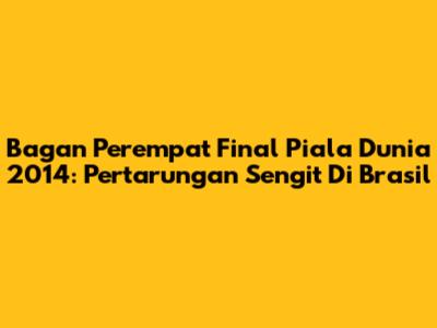 Bagan Perempat Final Piala Dunia 2014: Pertarungan Sengit Di Brasil