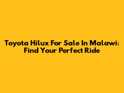 Toyota Hilux For Sale In Malawi: Find Your Perfect Ride