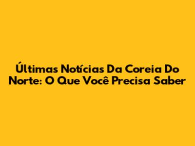 Últimas Notícias Da Coreia Do Norte: O Que Você Precisa Saber