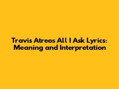 Travis Atreo's All I Ask Lyrics: Meaning And Interpretation