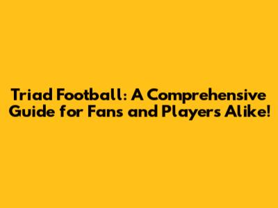 Triad Football: Your Ultimate Guide To Gridiron Glory!