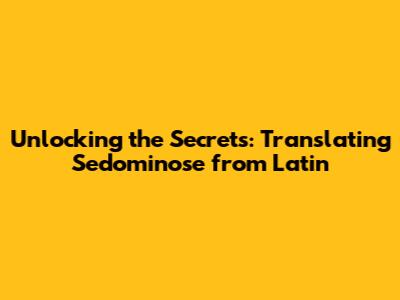 Unlocking The Secrets: Translating 'Sedominose' From Latin