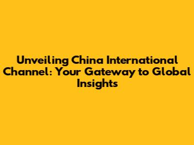 Unveiling China International Channel: Your Gateway To Global Insights