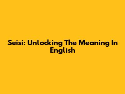 Seisi: Unlocking The Meaning In English
